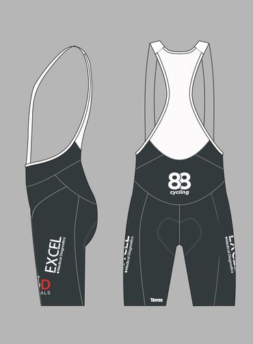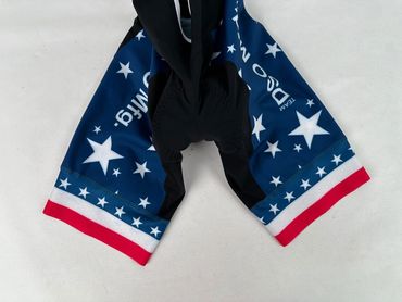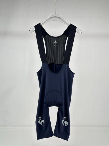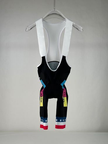 Pro fit cycling bib: Italian breathable fabric with one piece power band; Seamless suspenders; Silk Screen/Reflector/Silicone logos available; Pad - High end chamois for 6 to 8 hours of riding.